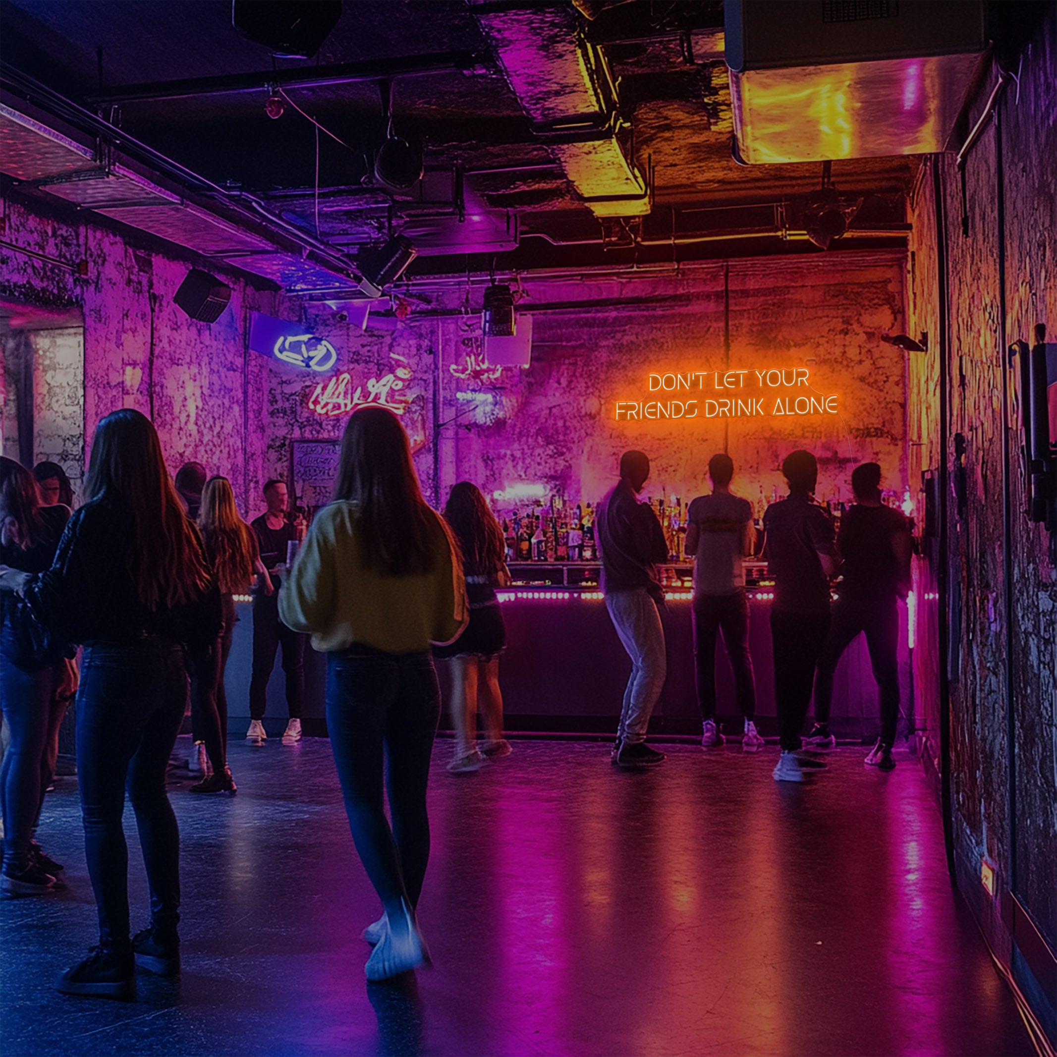 "DON'T LET YOUR FRIENDS DRINK ALONE" (Olga font) - LED neon sign