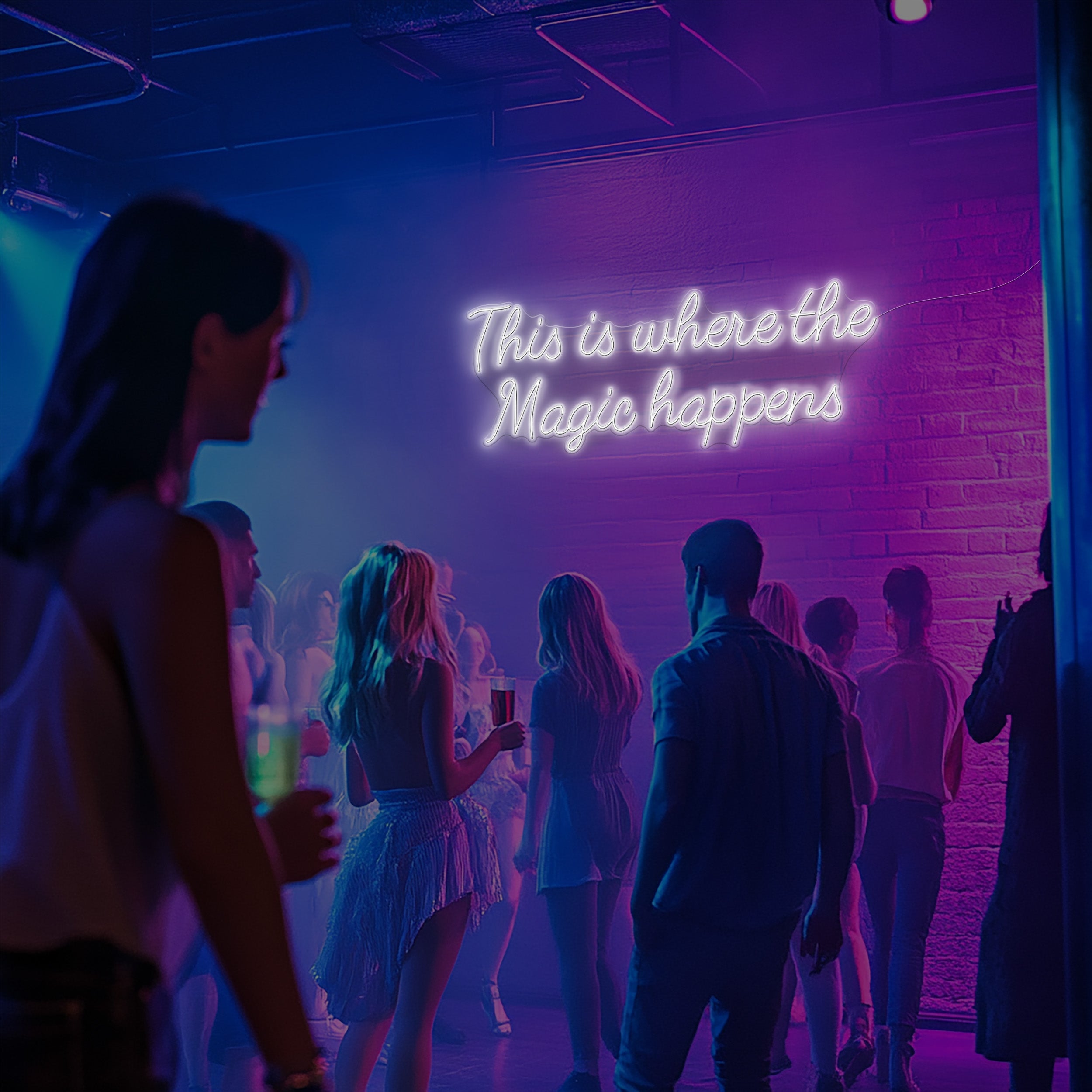 "This is where the Magic happens" (Fabfelt font) - LED neon sign